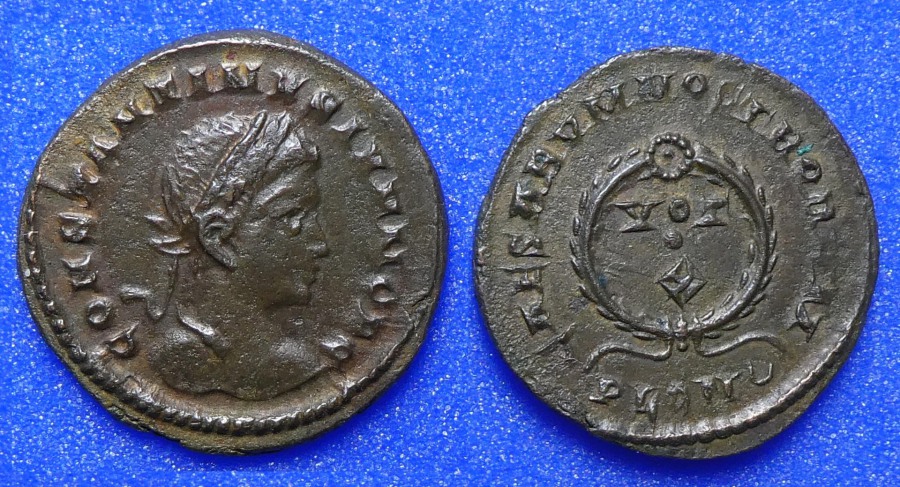 Reverse: VOT. X laurel wreath around, CAESARVM NOSTRORVM, PLON u(Control)