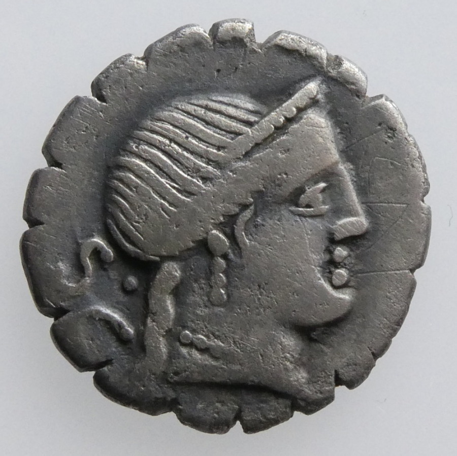 Mn. Aquillius Mn.F. N, Silver Serrated Denarius, Rome Mint, 71 BC