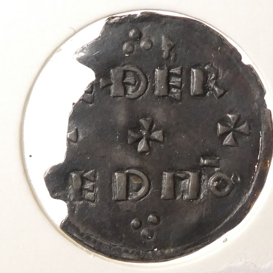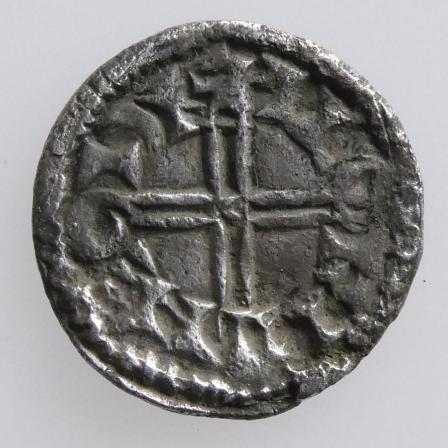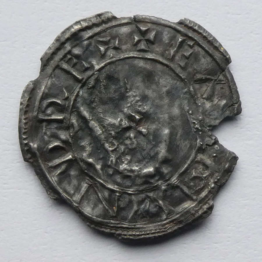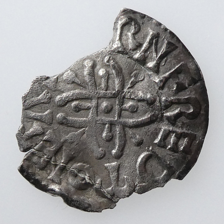Reverse: Voided long cross, fleur de lis between two pellets in angles, uncertain moneyer, [ ] N M-OLVN