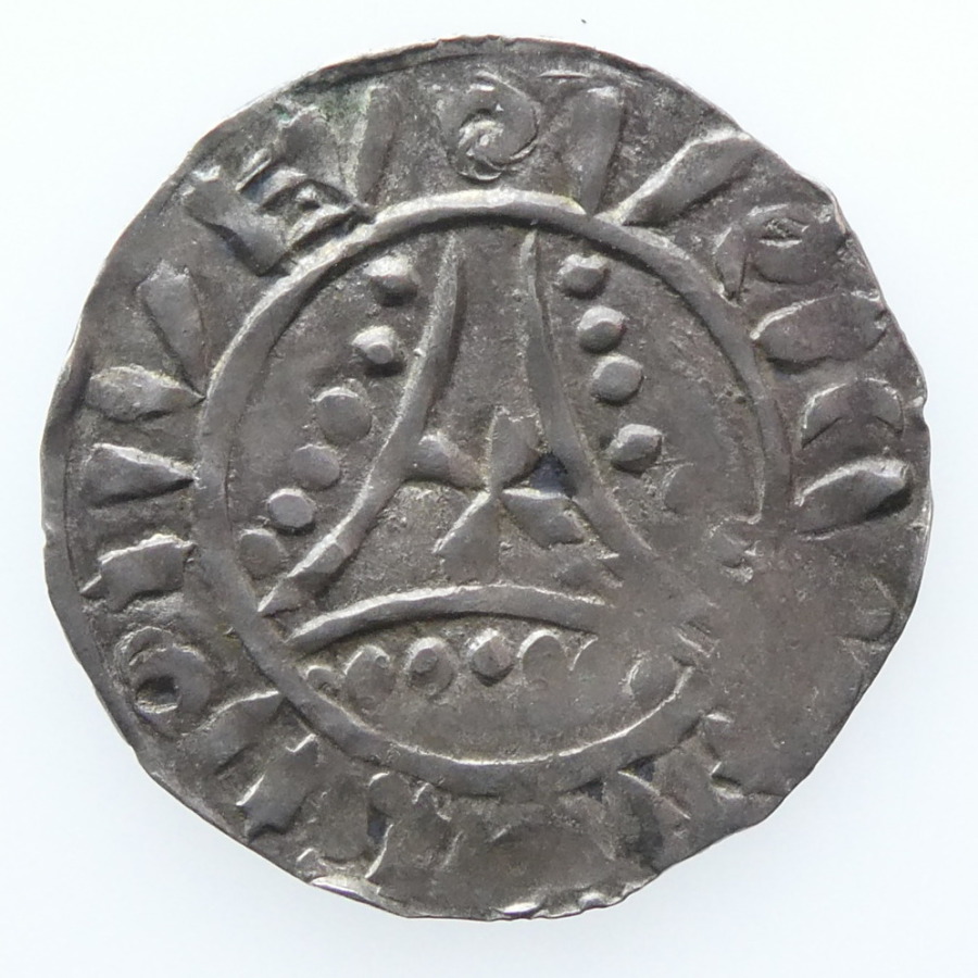 Obverse: Intervoven triquetra shape with pellet ornamentation, legend clear but somewhat blundered reading (Anglicised) IγnOrγcIIIOAD