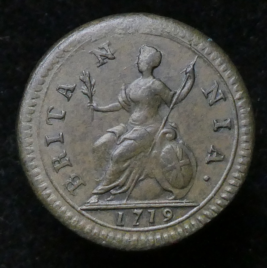 George I, Second Issue Farthing 1719, Small Lettering