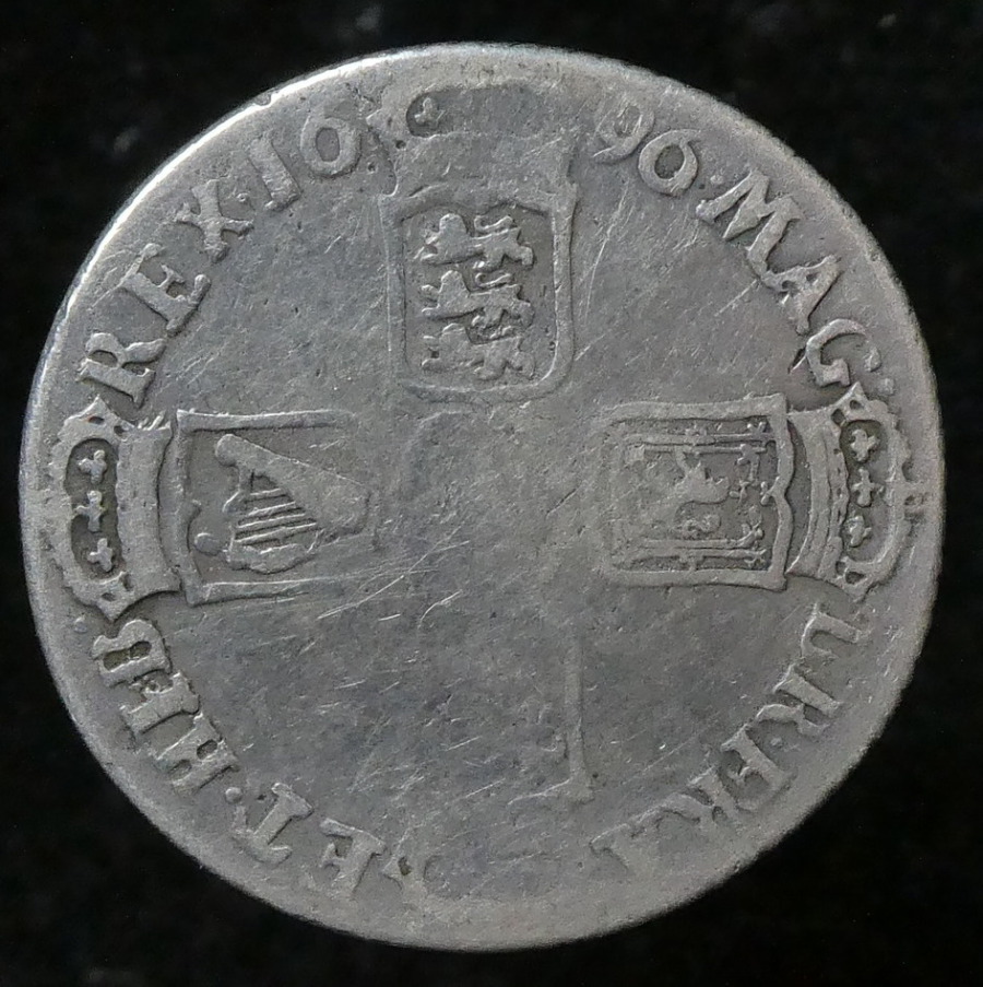 William III, Silver Shilling, EXETER Provincial Mint, 1696, SCARCE