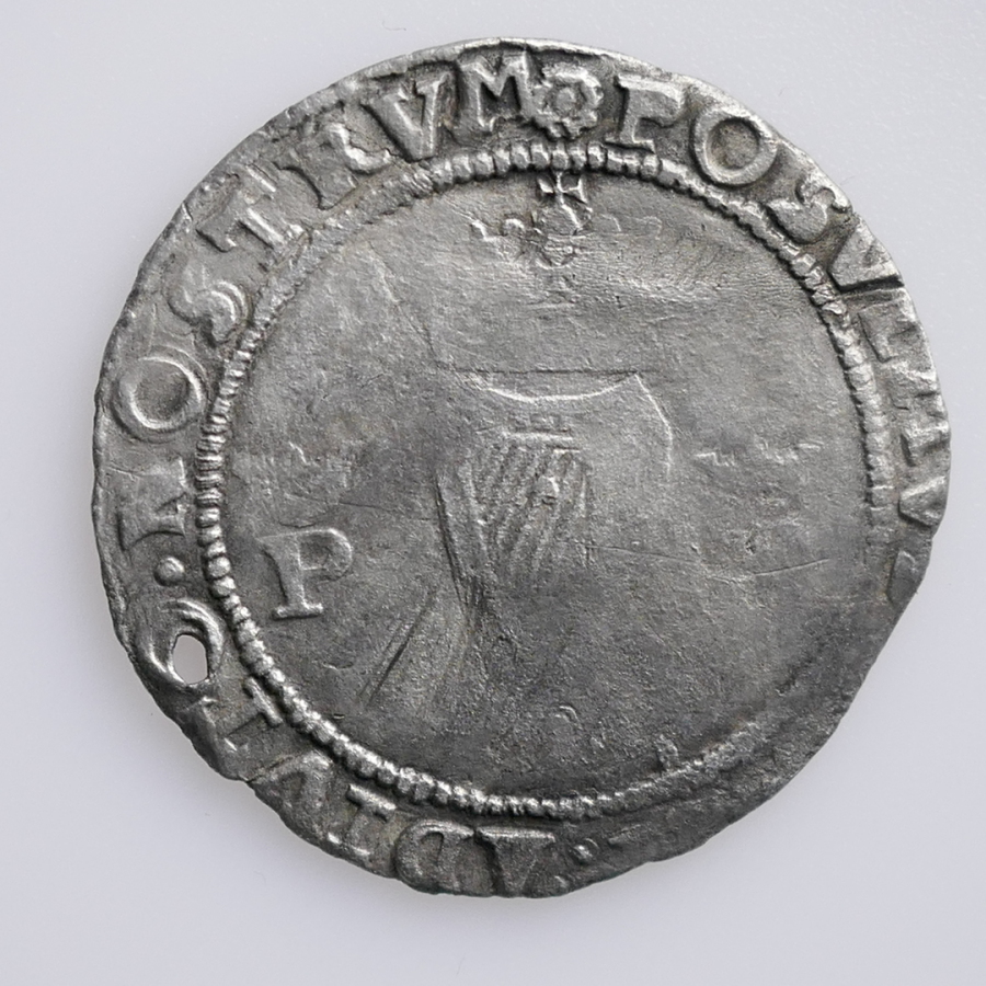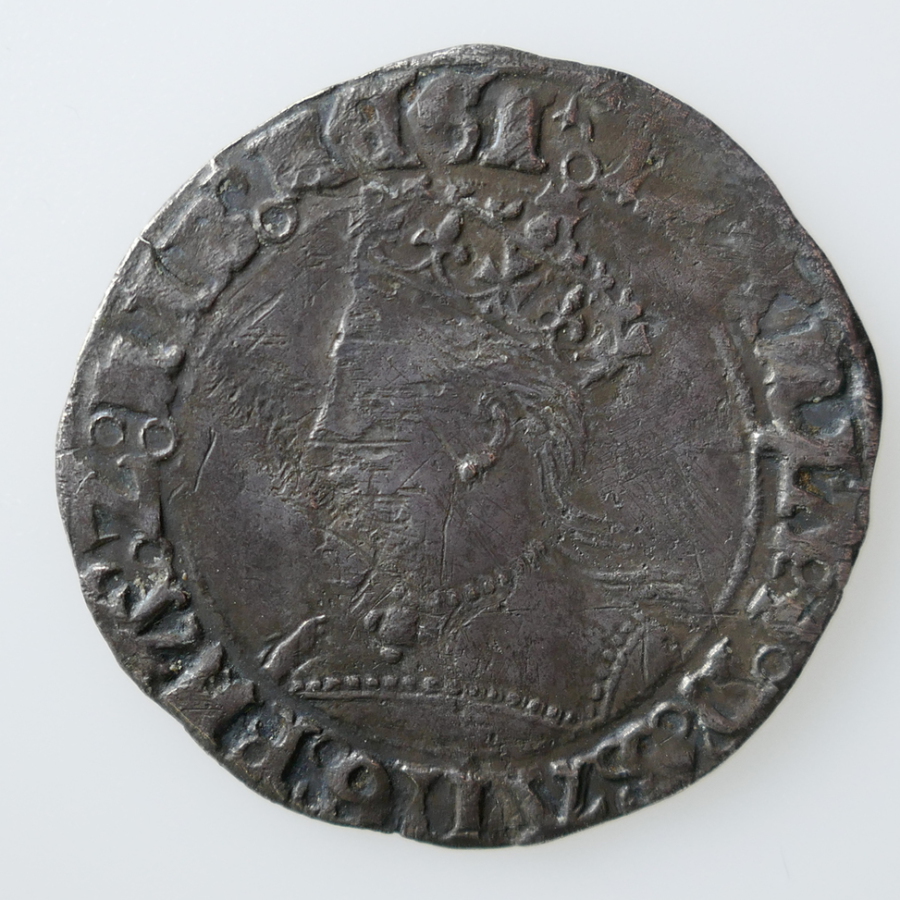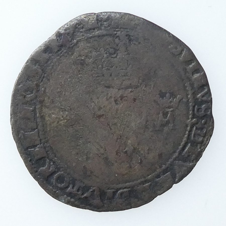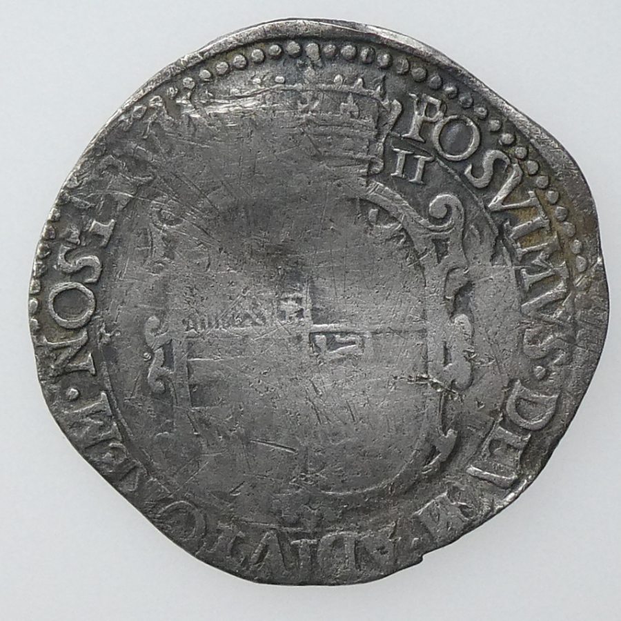 Reverse: POSUIMUS DEUM ADIUTO NOS, long cross over royal shield, initial mint mark lis