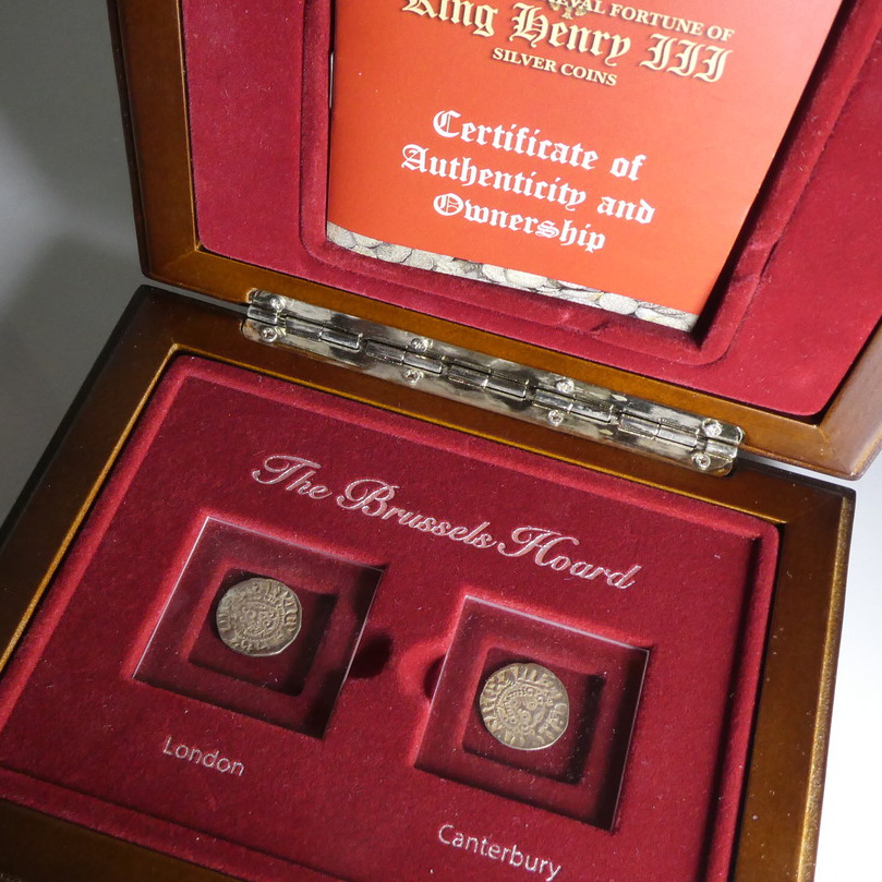 *NEW* Two Silver Pennies from the Famous Brussel's Hoard, Henry III, Boxed, London & Canterbury,13th Century