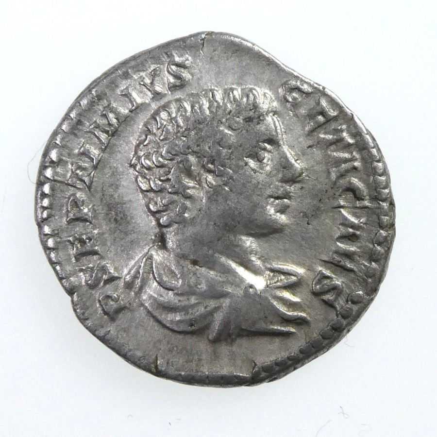 Obverse: Youthful bareheaded and draped bust right , P SEPTIMIVS GETA CAES